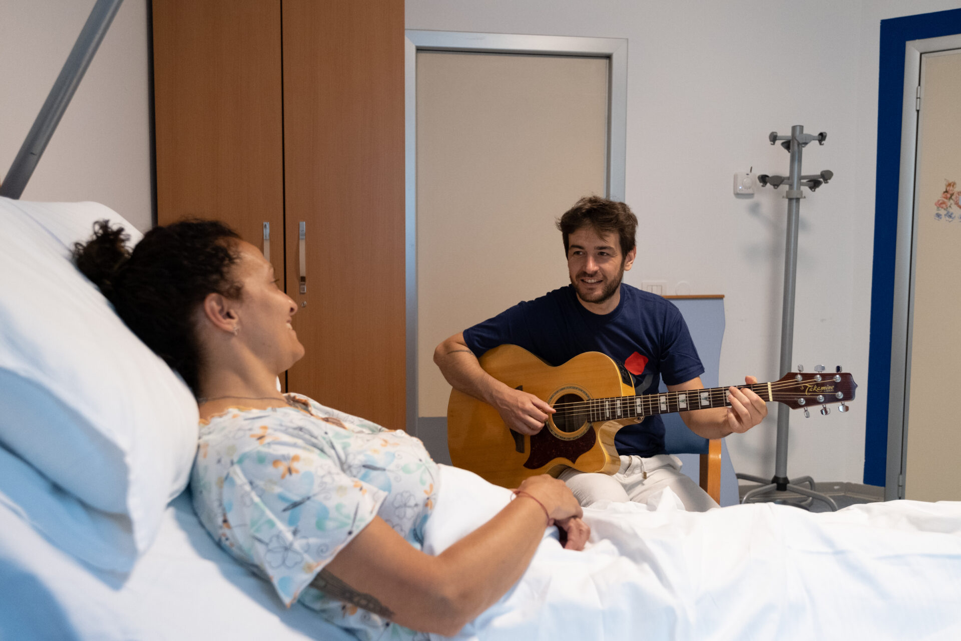 I pazienti ed i famigliari assistiti in struttura possono beneficiare, qual ora lo desiderino, delle sedute di Musicoterapia svolte da un professionista esperto. L’attività, che si basa sull’ascolto e l’improvvisazione, si modella secondo i gusti, le conoscenze, e le possibilità del singolo paziente e vede la partecipazione anche dei famigliari quando presenti. Un’attività complementare che permette di migliorare la comunicazione tra paziente e personale sanitario, rivivere ricordi felici, alleviare lo stress e l’ansia del momento.